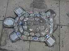 The artwork was never given an official name and those who installed it referred to it simply as either Antimonumento or +43. After the subsequent installation of other unnamed anti-monuments, like the Antimonumento +65 and the Antimonumento +72, the Antimonumento +43 received its name after its physical characteristics. Demonstrators added the slogan of those seeking justice for the case ("Because they were taken alive, we want them back alive!") to the border of the sidewalk and subsequently installed a complement in front of both elements, a concrete turtle with forty-three rocks on its shell with little turtles painted with the names of each of the disappeared on them.[2]