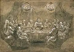 In 1666 Bouzonnet-Stella was received as a member of the Académie de peinture et de sculpture for his picture of The Pythian Games. He died in Paris on 9 May 1682.[1] There are several known etchings by him, including Moses defending the Daughters of Jethro, after Nicolas Poussin.[3]