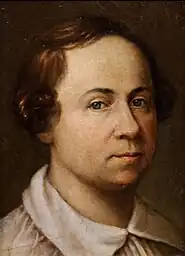 He arrived in late 1835 or early 1836.[3] Thanks to his wife's dowry, he was able to acquire a large home with ample room for a studio. His ability to speak fluent French, German and Italian helped ease his introduction to the boyar aristocracy. In addition to creating portraits of prominent people and their ancestors, he gave art lessons to their children. The portraits were done in a variety of media and forms, including miniatures.[1] He also painted icons and, in 1856, worked on church murals in Baloteasca and Budești.