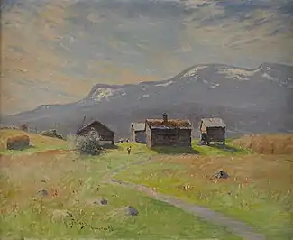 He became famous for his snowy landscape paintings from the Norrland region. Dalarna and Jämtland were also popular settings for his work.[3] He was Vice-Chairman of the "Svenska konstnärernas förening" from 1913 to 1918 and a board member of the "Sveriges allmänna konstförening" from 1906 until his death. He was elected a member of the Royal Academy in 1922.