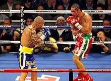 Antonio Margarito Montiel (born March 18, 1978) is a Mexican-American former professional boxer who competed between 1994 and 2017. He held multiple welterweight world championships, including the WBO title from 2002 to 2007, the IBF title in 2008, and the WBA (Super) title from 2008 to 2009. He also challenged three times for a light middleweight world title between 2004 and 2011. Nicknamed El Tornado de Tijuana ("The Tijuana Tornado"), Margarito was known for his aggressive pressure fighting style and exceptionally durable chin.[3][4][5]