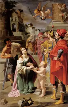 Luigi Lanzi identifies him as a pupil of Ludovico Carracci in Bologna.[2] Fabrizi painted the counterfacade fresco of the Madonna and Child with Saints Constantius, Dominic, Catherine of Siena and Herculanus (1644) at San Domenico in Perugia. he also painted the canvases (Martyrdom of St Dorothy and Saints Cecilia and Valerian) in the Chapel of the Rosary in the same church; the frescoes by him in this chapel were destroyed in 1956.[3] He also painted (1642) for the church of Santa Lucia in Foligno.[4]