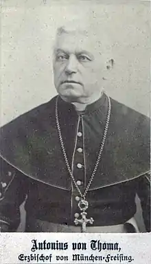 Antonius von Thoma (1 March 1829 – 24 November 1897) was Bishop and later Archbishop of the Archdiocese of München und Freising from 1889 until his death in 1897.