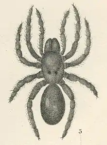- ↑ "Antrodiaetus unicolor". NMBE World Spider Catalog. Retrieved 2019-09-24.