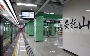 Antuo Hill station (Chinese: 安托山站; pinyin: Āntuō Shān Zhàn) is a station of Shenzhen Metro Line 2 and Line 7. Line 2 platforms opened on 28 June 2011 and Line 7 platforms opened on 28 October 2016.