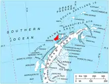 On Anvers Island, the British Antarctic Survey built and operated a station (Base N) for the purpose of survey and geology.[1] It consisted of a hut and was occupied from February 27, 1955, until January 10, 1958. In 1958, the station was closed when local work was completed. Its hut was loaned to the U.S. Government on July 2, 1963, which converted it into a biological laboratory in January 1965 for use by American scientists at the nearby Palmer Station. The British station was open in support of an air facility from 1969 until 1971. It was destroyed by fire on December 28, 1971, while being renovated by the British Antarctic Survey. Debris was removed by the members of the US Antarctic Program in 1990/1991. Only concrete foundations remain.