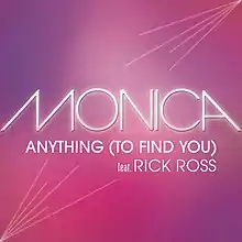 "Anything (To Find You)" is a song by American recording artist Monica taken from her seventh studio album, New Life (2012). It features additional vocals from American rapper Rick Ross, and was written and produced by longtime contributors Missy Elliott and Cainon Lamb with additional penning from fellow R&B singer Jazmine Sullivan, Henry Fuse, Miguel "Pro" Castro, and William Roberts. The song samples 1995's "Who Shot Ya?" performed by The Notorious B.I.G. and Diddy, and uses an interpolation of Marvin Gaye and Tammi Terrell's 1968 hit, "You're All I Need to Get By".