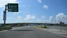The Aomori-chūō Interchange, south of Central Aomori, is a continuous green-T hybrid interchange. The interchange is 6.1 kilometres (3.8 mi) from Aomori IC and 9.5 kilometres (5.9 mi) from Aomori-higashi IC, the respective western and eastern termini of the expressway.[2] It is a junction of the Aomori Expressway and the Aomori Belt Highway (National Route 7), which serves as an access road along much of the expressway.