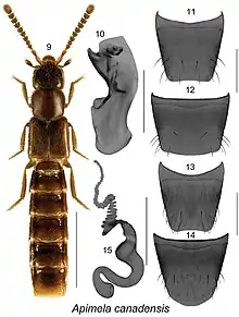 Apimela canadensis is a species of Staphylinid (rove beetle) first described in 2017 from specimens collected in New Brunswick, Canada.[1] Its species name, canadensis, was given in honour of the 150th anniversary of Canada's Confederation.[2]