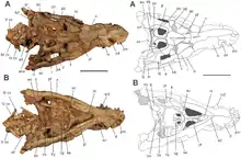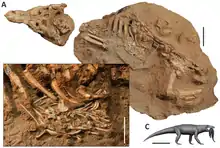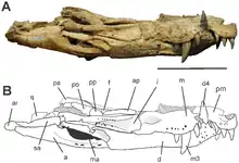 Aplestosuchus is an extinct genus of baurusuchid mesoeucrocodylian known from the Late Cretaceous Adamantina Formation of São Paulo, southern Brazil. It contains a single species, Aplestosuchus sordidus. A. sordidus is represented by a single articulated and nearly complete skeleton, preserving the remains of an unidentified sphagesaurid crocodyliform in its abdominal cavity. The specimen represents direct evidence of predation between different taxa of crocodyliforms in the fossil record.[1]