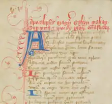 - Scanned image of the first page of "The Apocalypse of Bishop Golias" in a 13th-century manuscript from the British Library