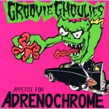 Appetite for Adrenochrome is the debut album by the Sacramento punk rock band the Groovie Ghoulies.[3][4] It was released in 1989 on their independent label, Crimson Corpse Records.[5] It was recorded at Enharmonic Studios in Sacramento with the band's original lineup of Kepi Ghoulie (vocals, guitar), Rudge (guitar), Vetty (bass guitar), and John Philip Sosa (drums). The cover art and the band's logo were done by Alex Mock, while the artwork and typesetting for the lyrics sheet was done by S. Britt.