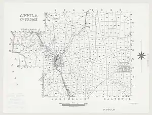 The town of Yarrowie (an Aboriginal word for hunting ground) was established in 1872 following the proclamation of the Strangways Land Act for closer settlement in 1869. The town grew quickly as settlers moved to the area, and by the 1880s it had two hotels, four blacksmiths, three carpenters, Protestant, Catholic and government schools, a post office and telegraph station as well as other stores. In 1877 the name was changed to Appila-Yarrowie then later to just Appila to remove confusion with other towns including Yarcowie, Tarcowie, Terowie, Caltowie and Willowie.[3]