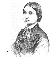 Appolonia Jagiello was born in Poland in 1825. Much of her early life is unknown, or was romanticized following her eventually immigration to the United States. According to one source, Appolonia was born in Lithuania (then part of the Polish–Lithuanian Commonwealth) and was educated in Krakow.[1] During the Kraków uprising of 1846, she disguised herself as a man and joined the Polish army. The uprising was eventually crushed by the combined powers of Austria and Russia, but Jagiello was able to re-assume female dress and escape.[1] Jagiello made her way to Hungary after the conflict and took part in the Hungarian Revolution of 1848, again fighting against the Austrian Empire. During the conflict, she was eventually promoted to be the superintendent of a military hospital at the Fortress of Komárno, which the revolutionary army had captured.[2] When the revolution was suppressed by the Austrians, Jagiello immigrated to the United States, joining a large number of Polish, Lithuanian and Hungarian emigres who had also fled Europe.[3]