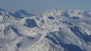 ![]() Apusiaajik island seen from the frozen Torsuut Tunoq sound northeast of Kulusuk | |