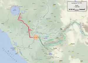 It was joined by the aqua Traiana, probably in 109 AD, to share a common lower path into Rome, though their routes are uncertain.