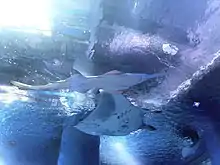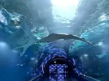 A dome-shaped tunnel fishtank with a total length of 20 m (66 ft) named "Wonder Tube" is installed in the facility. In Wonder Tube, about 15 species of rays of various sizes, including manta rays, are kept.[21] This aquarium has the only facilities in the world where Dwarf sawfish are kept. There are events such as an experience corner where you can feed krill to manta rays.[18][22]