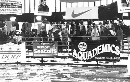 Aquademics was a Michigan nonprofit organization established in 1990 to increase the number and presence of African American children in competitive water sports. In addition to sponsoring a competitive swimming team, Aquademics operated an academic support program. Based in Ann Arbor, Aquademics programs were open to all youth of color, ages seven to sixteen, living in Washtenaw County.[1] In operation throughout the 1990s, Aquademics formally disbanded at the turn of the 21st century.
