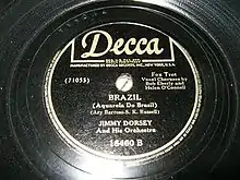 Before being recorded, "Aquarela do Brasil", initially named "Aquarela brasileira", was performed by the baritone Cândido Botelho on Joujoux e Balangandans, a benefit concert sponsored by Darci Vargas, then the First Lady of Brazil. It was then recorded by Francisco de Morais Alves, arranged by Radamés Gnattali and his orchestra, and released by Odeon Records in August 1939.[1][2] It was also recorded by Araci Cortes, but despite the singer's huge popularity at the time, the song was not a success.