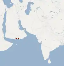 It is found in the Middle East, with documented occurrence in southwestern Oman and southeastern Yemen.[1] As of 2017, it is evaluated as a data deficient species by the IUCN. There is no estimate of its population size.[1]