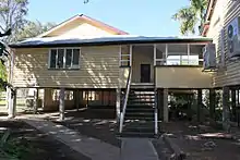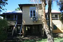 From the outset, teachers' residences were built to standards regulated by the Board of General Education rather than to specific designs which varied according to architects responsible.[20] Initially, residences were most often attached as annexes to the classroom building, but from the 1880s were built as detached residences. These residences were very similar in design to the vernacular Queensland house with few, if any, education-specific requirements or features.[1]