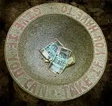 A short walk north off the main beach is a smaller beach with a "fresh water lake" close to the sea. The jungle valley, enclosed between low hills, hides a banyan tree. Adjoining the banyan tree there is a stone sculpture created by an American conceptual and land art artist, Jacek Tylicki, titled Give if you can - Take if you have to (also called The Money Stone). It has become a pilgrimage destination.