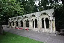 More recently, the grounds have become known as Dean's Park, and the stone yard has moved to Deangate. During World War II, the park was excavated to house water tanks, but it has since been restored. In 1987, the arcade was rededicated as a war memorial to the dead of the world wars and 19th-century conflicts, and since 1997, it has been grade I listed.[2][3]