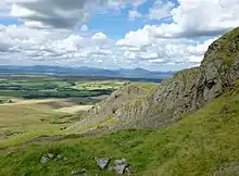 Crags and scree in the Corrie of Balglass, near Fintry. A conventicle was held there which was attacked when it did not disperse when ordered to.