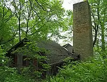 The sawmill was a few hundred feet north of the house. Still standing is a 40-foot (12 m) stone chimney.