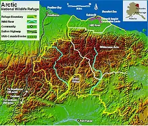- ↑ "Arctic National Wildlife Refuge". arcticcircle.uconn.edu. Archived from the original on 6 February 2012. Retrieved 25 April 2018.