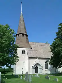The oldest part of the church is the tower, dating from about 1200. The tower originally belonged to an earlier church building from the 12th century, the nave and choir of which was replaced with the current building circa 1250. The sculptured choir portal originally also belonged to the earlier church.[1]