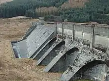 The Cowal Hydro Scheme is part of the Sloy/Awe Hydro-Electric Scheme and produces 8MW from the stored waters of Loch Tarsan (artificial reservoir), located close by in Glen Lean. The generating house is located at Ardtaraig and is supplied by pipe. The scheme opened in 1951.[2]