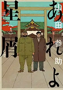 ![]() The first volume of Areyo Hoshikuzu featuring Tokutarō Kawashima and Kadomatsu Kuroda | |