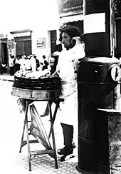 It is not known exactly when or how pizza arrived from Naples to Buenos Aires.[24] Writing about the origins of the dish in the Argentine capital, historian Horacio Julio Spinetto notes that the first documented cases involve the Neapolitan immigrant Nicola Vaccarezza—who made the first fainá of the country in his pizza oven in La Boca in 1882—[25] and Ricardo Ravadero, a Genoese immigrant who dedicated himself to the street sale of pizzas, which he placed stacked inside a metal "bin" that he mounted on wooden trestles.[12] Nevertheless, La Nación pointed out in 2023 that the Vaccarezza story is not real but actually arose from a fictional story published in the 1990s, and since then has been wrongly cited in books and numerous newspaper articles, which over time changed the fainá of the story for pizza.[24]