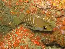 The Argentine seabass (Acanthistius brasilianus) is a species of seabass in the family Serranidae.[1] It occurs on the South American continental shelf of the western Atlantic Ocean, where it used to be caught commercially for human consumption.[2][3]