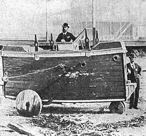 Argonaut Junior was the first successful submarine built by the American engineer Simon Lake. Her main attribute, like that of the sub built by Lake in 1897, Argonaut, was an air lock. Her dimensions were length 14 ft (4.3 m), beam 4 ft (1.2 m), and a depth of 5 ft (1.5 m).[1][2] Different sources incorrectly identify Argonaut No 1, and Argonaut No 2 as the name of this vessel. Argonaut No 1 was built in 1897 and is 36 feet (11 m) in length, Argonaut No 2 was a reconstruction of Argonaut No 1 finishing in 1900 with a length of 60 feet (18 m) and significantly different profile.[3]
