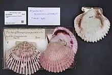 Argopecten purpuratus is an edible marine species of saltwater shellfish, a bivalve mollusk in the family Pectinidae.