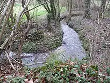 At low water the minimum flow rate of the watercourse recorded for three consecutive days in a month, during a five-year dry period, was 0.014 cubic metres per second (0.49 cu ft/s).[5]
