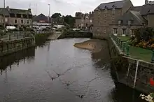 During high tides a small tidal bore rises up the river, up to the height of the Guildo bridge.