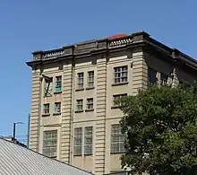 The Argyle Street substation, which includes the substation building, the switchhouse, transformers and surrounding electrical equipment - are all located in an area enclosed by steel mesh fencing on an escarpment above Trinity Avenue. The substation is a rendered brick, four-storey building constructed in the Inter-War Stripped Classical style and featuring steel windows with moulded and rendered sills and banded pilasters extending from ground level to a deep moulded cornice and parapet. It is accessible from the Harbour Bridge cycleway via a pair of timber doors with rendered architrave and pediment. The substation also features a double-tiered hipped roof.[1]