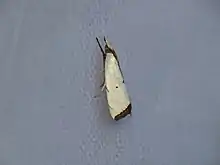 Argyria lacteella, the milky urola moth, is a moth in the family Crambidae. It was described by Johan Christian Fabricius in 1794.[1] It is found in North America, from Maryland south to Florida and west to Texas. In the south, the range extends through Costa Rica to Brazil. It is also found on Cuba, Puerto Rico and Bermuda.