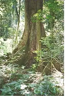 Argyrodendron actinophyllum is a large rainforest tree, native to eastern Australia. Common names include black booyong, blackjack, blush tulip oak, crowsfoot elm and Mackay tulip oak.[1] The heartwood is coloured pink-brown. One of the most distinctive features of Argyrodendron actinophyllum is the large deep green leaves that radiate out from central stems – hence the specific epithet actino 'ray', phyllum 'leaf'. Also the trunks form large characteristic buttresses.