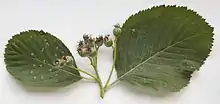 | Leaves and unripe fruit from a small tree in Sutton Park, England | |