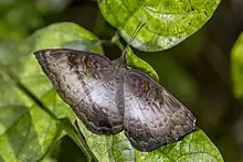 Ariadne albifascia, the white-banded castor, is a butterfly in the family Nymphalidae.The Biblidinae are a subfamily of butterflies with over 350 species worldwide, the vast majority of which are Neotropical. In the Afrotropical region there 30 species, in the genera Byblia, Ariadne, Eurytela, Neptidopsis, Sevenia and Mesoxantha.[2] It is found in Sierra Leone, Liberia, Ivory Coast, Ghana, Nigeria (the southern part of the country and the Cross River loop), Cameroon, the Republic of the Congo, the Central African Republic and western Uganda.[3] The habitat consists of forests, especially open degraded habitats.
