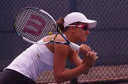 Arina Rodionova was born to Ivan and Natalia Rodionova and lives in Melbourne with her sister Anastasia.[1][3] She began playing tennis aged three, "I began playing tennis when I was almost three years old. And why exactly tennis? There wasn't any choice for me with my dad being a coach and my sister a professional tennis player, but in the end I think it's worked well!"[1] Rodionova cites Martina Hingis as her role model, and also admires Justine Henin and Bob and Mike Bryan.[3] She prefers hard courts and forehand as a shot.[3]