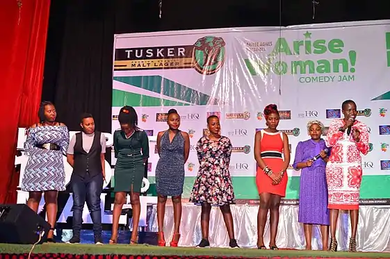 - ↑ Ssejjombwe, Isaac (11 March 2019). "Arise Women Comediennes leave revelers in stitches". Daily Monitor. No. 69. Nation Media Group. p. 29.