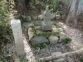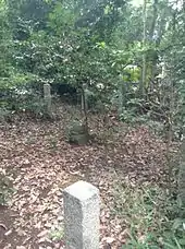 The location of Narihira's grave is uncertain. In the Middle Ages he was considered a deity (kami) or even an avatar of the Buddha Dainichi, and so it is possible that some what have been called graves of Narihira's are in fact sacred sites consecrated to him rather than places where he was actually believed to have been buried.[30] Kansai University professor and scholar of The Tales of Ise Tokurō Yamamoto (山本登朗, Yamamoto Tokurō) has speculated that the small stone grove on Mount Yoshida in eastern Kyoto known as "Narihira's burial mound" (業平塚, Narihira-zuka) may be such a site.[30] He further speculated that the site became associated with Narihira because it was near the grave-site of Emperor Yōzei, who in the Middle Ages was widely believed to have secretly been fathered by Narihira.[31] Another site traditionally believed to house Narihira's grave is Jūrin-ji (十輪寺) in western Kyoto, which is also known as "Narihira Temple" (なりひら寺, Narihira-dera).[32]