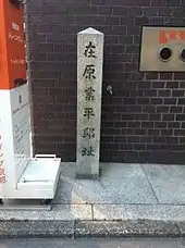 Abo was banished from the old capital Heijō-kyō (modern Nara) to Tsukushi Province (within modern Fukuoka) in 824 due to his involvement in a failed coup d'état known as the Kusuko Incident.[6] Narihira was born during his father's exile.[7] After Abo's return to Heijō,[6] in 826, Narihira and his brothers Yukihira, Nakahira and Morihira were made commoners and given the surname Ariwara.[8] The scholar Ōe no Otondo was also a brother of Narihira's.[5]