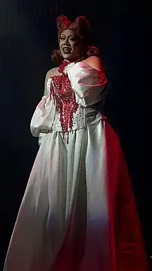 On episode 9, she placed in the bottom three alongside Hana Beshie and ØV Cünt. The three performed a lip-sync to "Dati" by Sam Concepcion and Tippy Dos Santos featuring Quest. Her performance resulted to a double elimination of Hana Beshie and ØV Cünt, securing her spot in the final four,[9] with M1ss Jade So, Bernie and Captivating Katkat.[10] In the final episode, she competed with M1ss Jade So for the second round of the lip-sync smackdown, performing "Who Is She?" by RuPaul. Her performance included a wig change, swallowing her contact lenses, and drinking and pouring liquor on herself. She then battled Captivating Katkat for the crown with their rendition of "Kapangyarihan" by iDolls.[11] She placed second in the competition.
