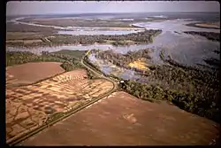 Two different eco-regions border the Grand Prairie along the major rivers forming the county's east and southern boundaries: the Arkansas River Holocene Meander Belt and the Western Lowlands Holocene Meanders. These areas of flat floodplain contain the meander belts of the present and past watercourses, point bars, natural levees, swales, and abandoned river channels. Some of the most extensive remaining tracts of native bottomland hardwood forest in the Mississippi Alluvial Plain remain along these rivers. Along the banks of the White River in Arkansas County, these forests are preserved in the White River National Wildlife Refuge.[16]
